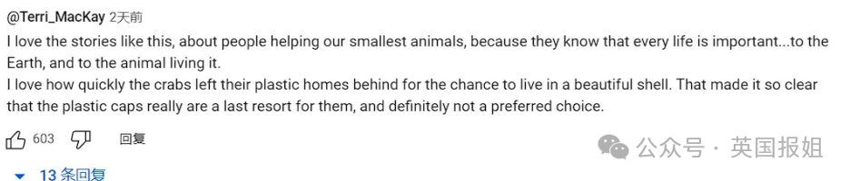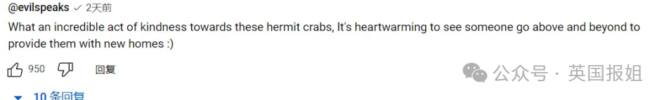 “看到有人对这些寄居蟹展现出如此令人难以置信的善意,真是暖心。看到有人不遗余力地为它们提供新家,感觉真好 :)”