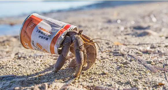 如今很多寄居蟹,已经不再使用死亡软体动物的甲壳,开始用塑料作为自己的新家……