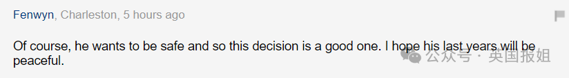 “他当然想要到一个安全的环境里,所以这个决定很好,希望他的晚年能够重归平静。”