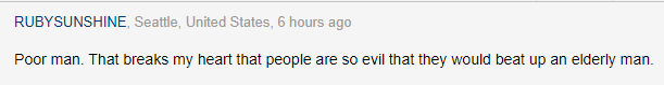 “太可怜了,居然有人会坏到殴打这样一位老人,实在令人痛心。”