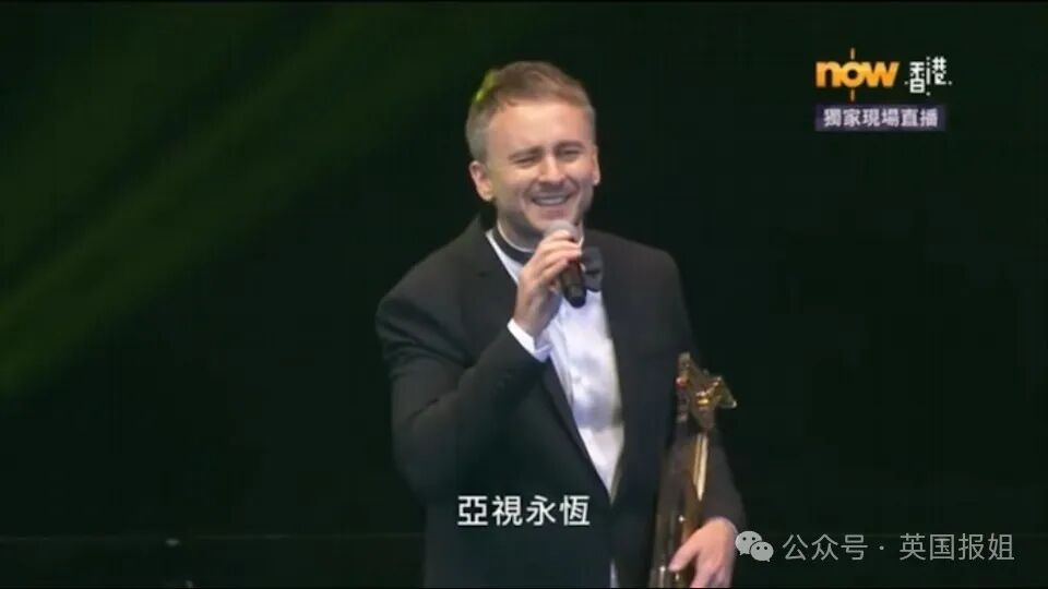 上台领奖时,激动的河国荣感谢了对自己不离不弃的妻子。面对镜头,他说道:“我要多谢一位支撑我好多年,照顾我、支持我、忍我,就是我的太太,但她好低调”。台下的Bonnie,听到河国荣的这番感言也是红了眼眶。