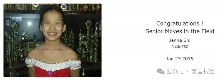 14岁时,她还曾代表广州某花滑俱乐部,参加了全美花滑少年组的比赛,获得了第12名的好成绩。
