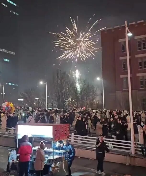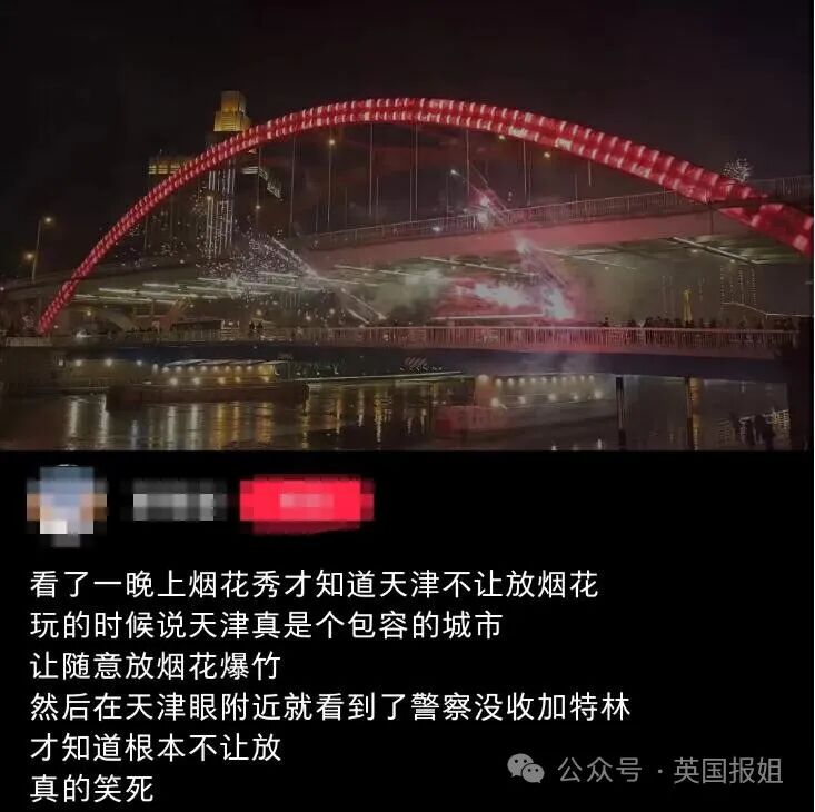 不少跟风来天津跨年的游客,一箱加特林放完才知道:“怎么滴,天津原来不让放烟花啊。”