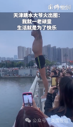 在天津大热旅游景区“狮子林桥”边,记者见到了传说中夏练三伏冬练三九的跳水大爷大妈。虽然现在跳桥项目已经被取消了,但大家还在坚持着冬泳和平台跳水两个保留项目。