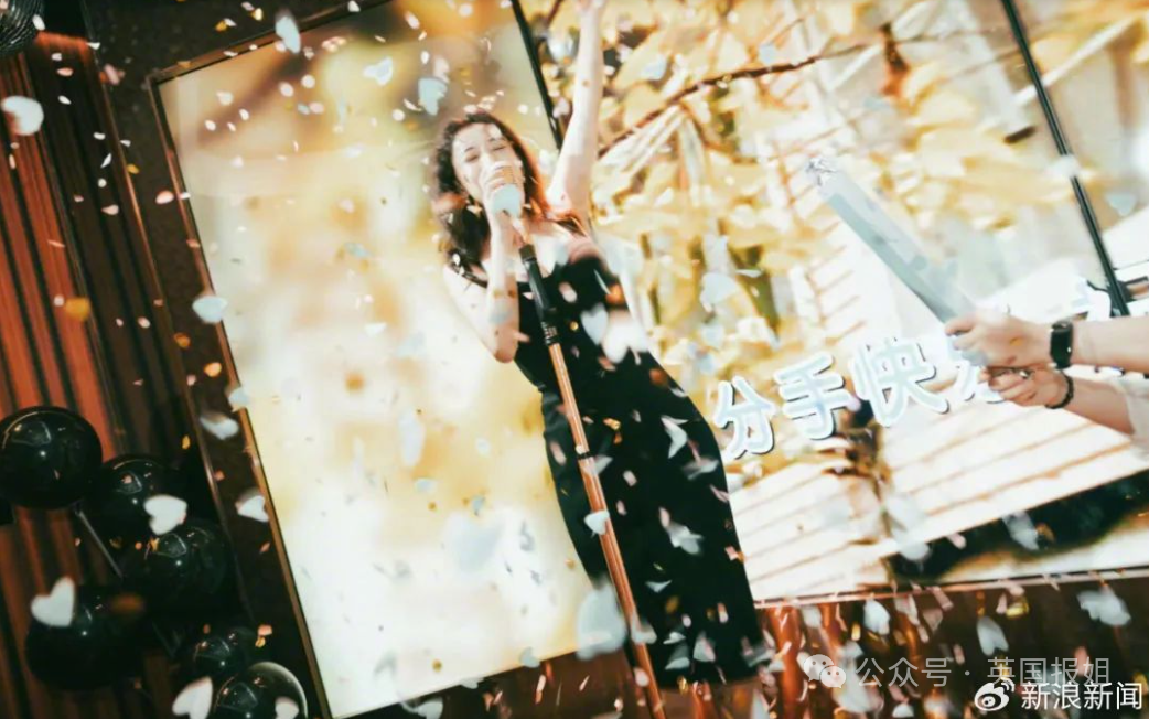 当事人办理完所有手续,邀请上身边好友闺蜜齐聚在KTV的彩色灯球下,拉上象征告别过去的条幅,打着恭祝XX女明星单飞出道的灯牌,切蛋糕、喝酒、吃美食、唱歌.....庆祝一段孽缘的结束,喜迎新生活的来临。