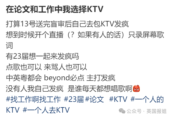 除了打工人摸鱼,这两年各大社交平台上还出现了一大批去KTV庆祝离职、离婚的断舍离达人。