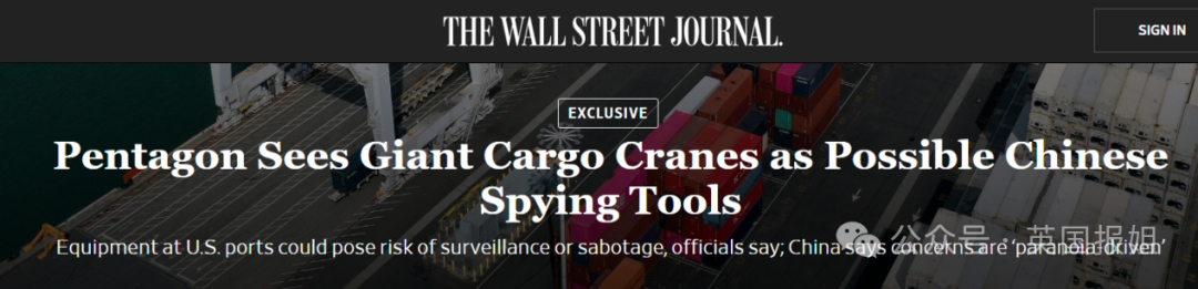 (华尔街日报:《五角大楼认为巨型起重机可能是中国间谍工具》)