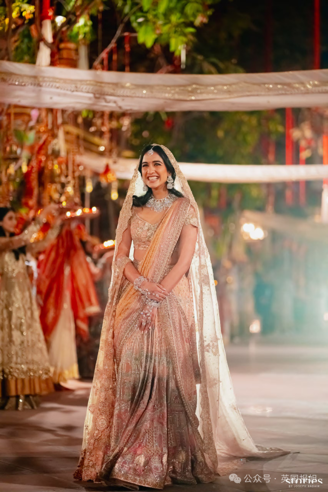 晚上则是最终的压轴派对,所有宾客会穿上印度传统服装,如沙丽或者夏尔瓦尼,见证新郎新娘的仪式。