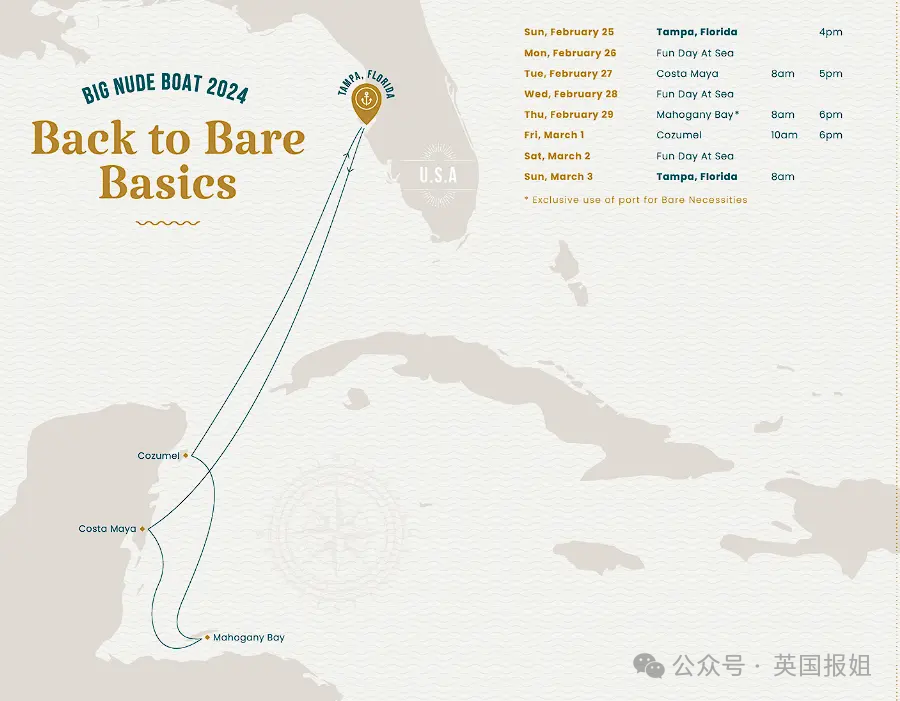 在谈及他的第一次裸体游轮经历时,老哥总结道:“这感觉太棒了。天气很好,还有机会裸体做很多有趣的事情,去海滩、度假村、跳舞、去酒吧等。我和伴侣都非常喜欢它。”