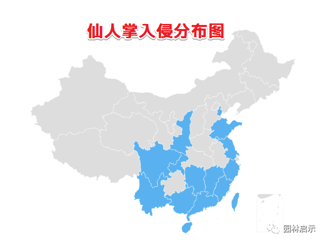 我国的仙人掌入侵地区主要在山东、江苏、浙江、江西、湖南、福建、广东、广西、云南、四川、陕西、海南、台湾和天津等多个省份。