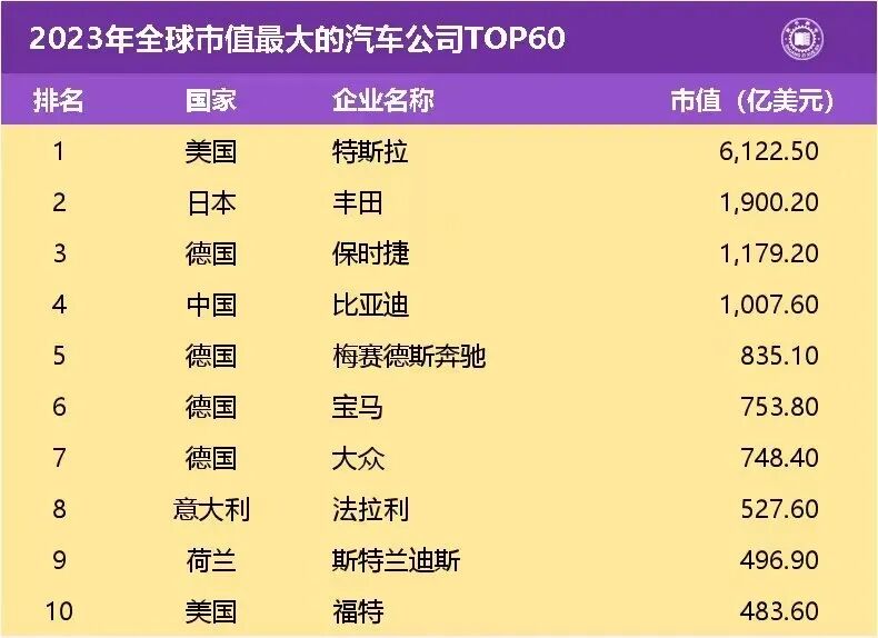 在销量和业绩数据双双大涨的加持下,资本市场的反映更为直观,根据2023年的市值排名榜单来看,比亚迪以1007亿美元的市值反超德国大众(748亿美元)、奔驰(835亿美元),跻身全球第四,仅次于保时捷(1179亿美元),也是中国首家市值进入世界前四的汽车巨头。