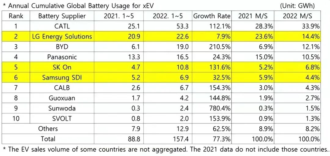 2022年,宁德时代并没有停下狂奔的脚步,今年上半年,宁德时代的营收额已突破千亿,半年净利润超过80亿,涨幅高达80%以上。在市占率方面,又迎来一次突破,上半年市场份额达34%,而韩国三大制造商的市场占有量也不过26%。