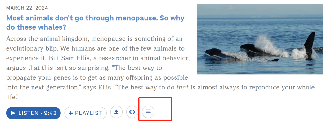 Life Kit每一期节目长度一般在10到25分钟之间,部分播客在官网上有逐字稿。音频的逐字稿可以在节目的官网上点击如下红框选项获得: