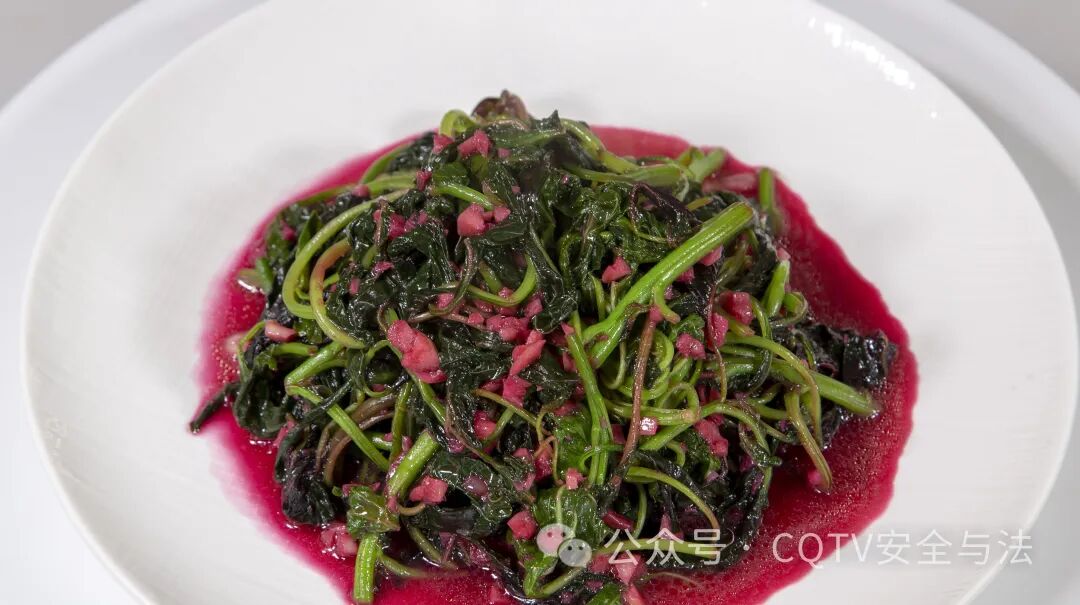用中大火迅速炒匀,使苋菜均匀吸收蒜蓉的香味,确保苋菜炒熟烂,即可出锅。