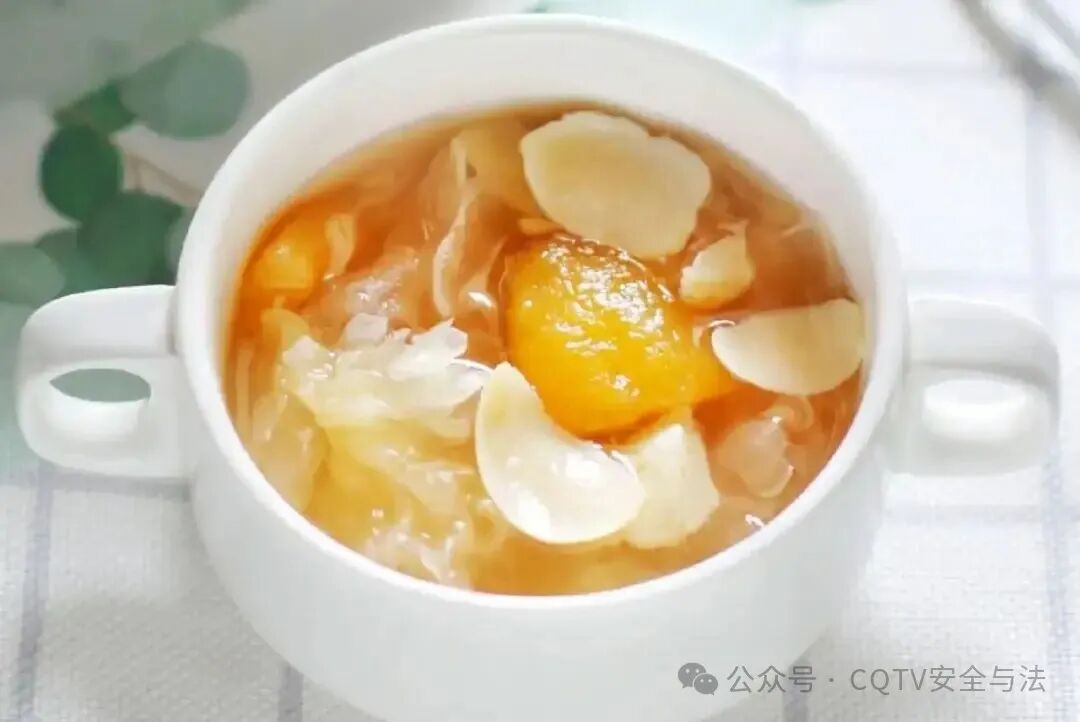 煮出来的白沫用勺子捞掉,以免影响口感,当汤汁变得浓稠,食材都煮烂时,即可关火。将糖水盛入碗中,稍微放凉后即可饮用。