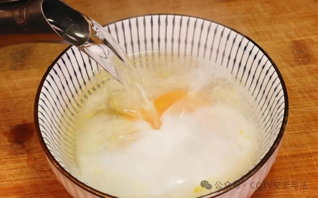 “开水冲鸡蛋”是一种非常古老的食用方法,将生鸡蛋打入碗中,然后用沸腾的开水冲泡,几分钟后,一个半熟的鸡蛋便完成了。