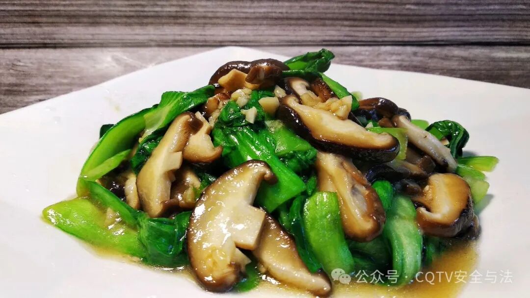 锅中加油热后,先将香菇片翻炒至出香,然后加入油菜快速翻炒。