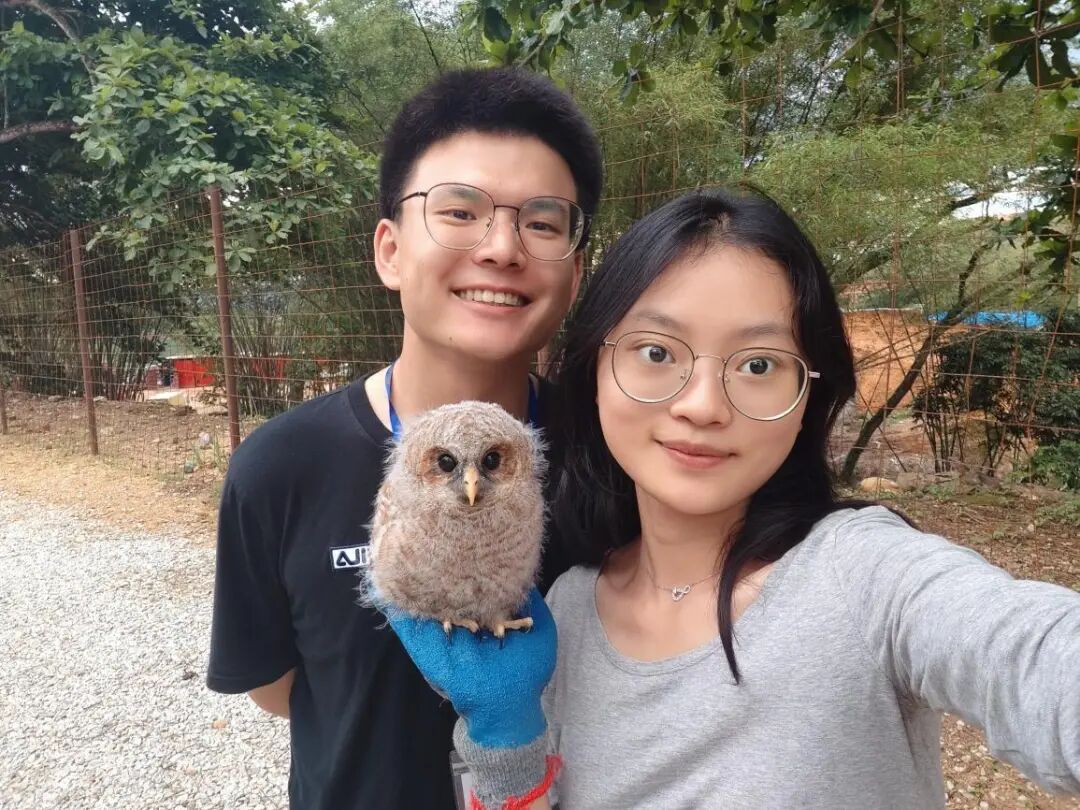 那是去年的11月1日,我在生活区发现了一只小猫头鹰。那天打雷下雨,风刮的很大,树都倒了,这只小猫头鹰从树上掉了下来,被我们的同事捡到了,我看到后很喜欢,就要过来养了起来。
