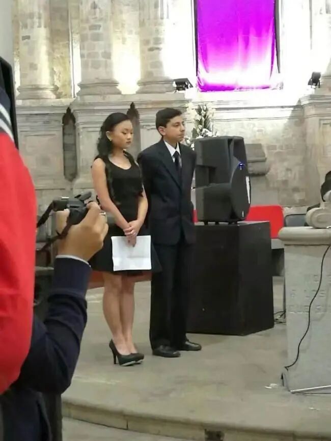 因为弟弟妹妹是在厄瓜多尔出生的,可以在厄瓜多尔上军校,那种学校不允许半路转进学生,所以爸爸安排我上教会学校。