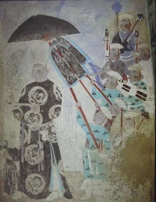 除此之外,还有张淮深夫妇出行图、曹议金与回鹘公主出行图,榆林窟的慕容归盈夫妇出行图等。人物浩荡、场面恢弘,不仅是当时社会生活习俗的真实写照,也反映了封建贵族的富足奢靡。