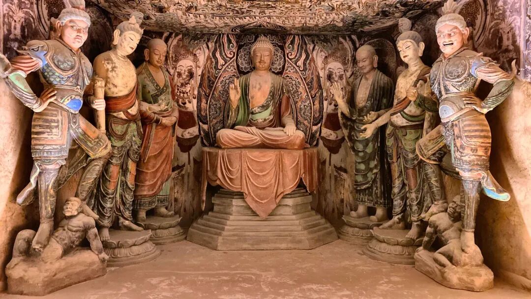 第45窟正壁敝口龛里的七身塑像是主要看点,为唐代雕塑的巅峰之作。原本窟内共有九身彩塑,两身力士像被毁后只存七身佛、弟子、菩萨和天王的塑像。