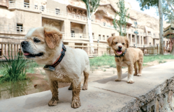 2012年7月乐乐出生于莫高窟,它是一只帅气的中华田园犬,敦煌研究院接待部门卫张爷爷负责照顾它,它便一直在莫高窟长大。