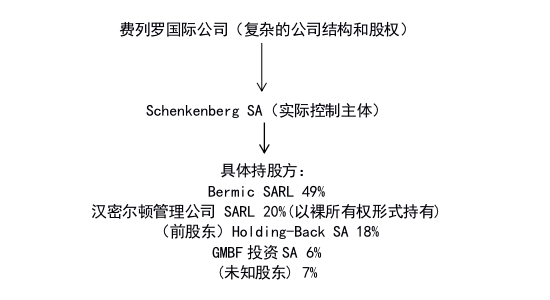 2015年,当Giovann从其父亲Michele手中接手家族企业,通过卢森堡控股公司Schenkenberg SA控制着75%的股份(其中20.1%为裸股)。Schenkenberg SA由全球104家合并公司和31家生产厂组成。据报道,申肯伯格与费列罗之间为借贷关系。前者向后者共提供了数十亿美元的贷款,它们对其子公司也是如此。据《经理杂志》称,这种贷款模式是该公司成功的关键。