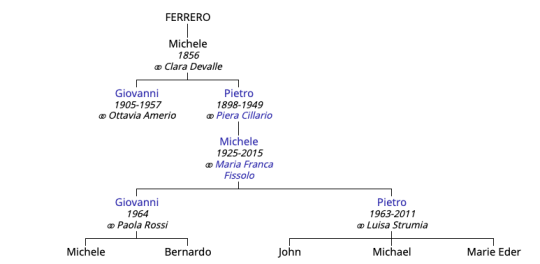 1997年,Michele Ferrero辞去家族企业董事总经理一职,成为董事会主席。他把日常事务留给了他的两个儿子Pietro和Giovanni。其中,Giovanni负责集团的创意决策,而Pietro负责产品开发和物流。但Pietro于2011年4月在南非骑自行车时,因突发心脏病不幸离世,Giovanni便成为了唯一的董事总经理。