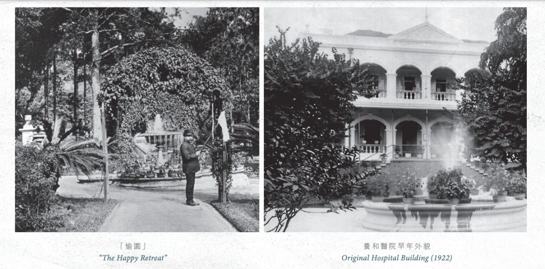 养和医院原地处跑马地的愉园游乐场,为香港第一个公众游乐场。愉园始建于20世纪初,为一座人工园林,包括西式的大宅建筑以及中式的亭台楼阁等。