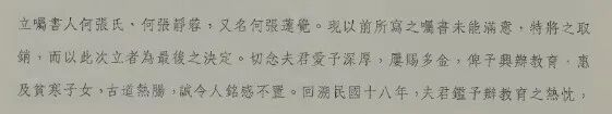 接着,何东又划拨1万元给信托人作为投资资金,收益专门用来打理中央书院创校校长是史钊域(F.Stewart) 、岳父麦奇廉(Hector C. Maclean)和妻子麦秀英及自己的坟墓。从这部分内容中可看出,何东对日后子孙是否会打扫墓地欠缺信心。