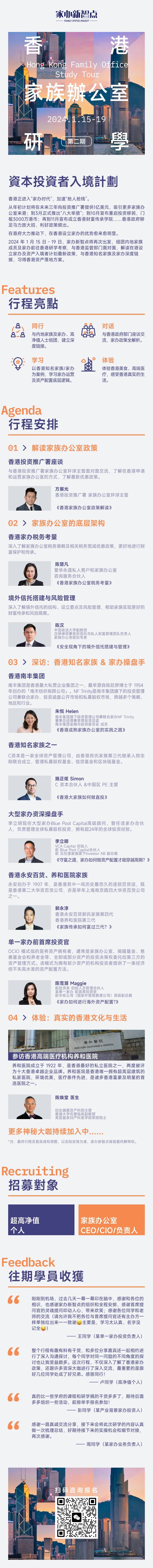 *2024年1月15日-19日,家办新智点将再次出发,组团一批内地家办及超高净值个人赴香港研学考察调研之旅,欢迎对香港家办政策,“资本投资者入境计划”及海外资产配置感兴趣的朋友扫码报名。