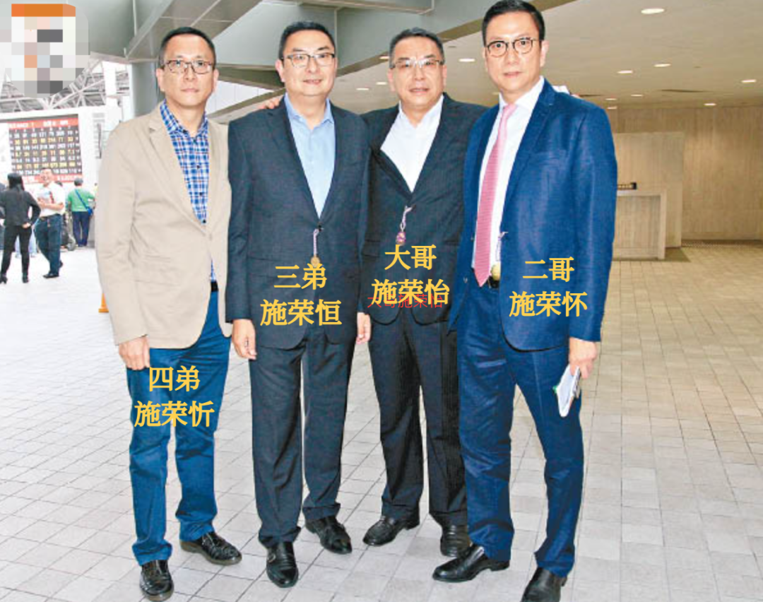 四子施荣忻,1974年12月生,为恒通董事兼投资总监。因读书时成绩不好,施荣忻没读大学。21岁,施荣忻开始参与家族事业,从恒通证券做起,并带领公司成功穿越1997年的金融风暴、2000年科网股风暴以及2007年世界金融海啸。