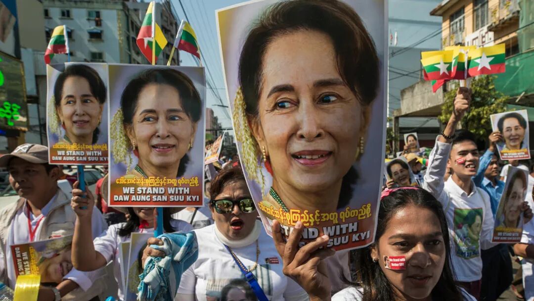 民众抗议缅甸军政府扣押国务资政昂山素季