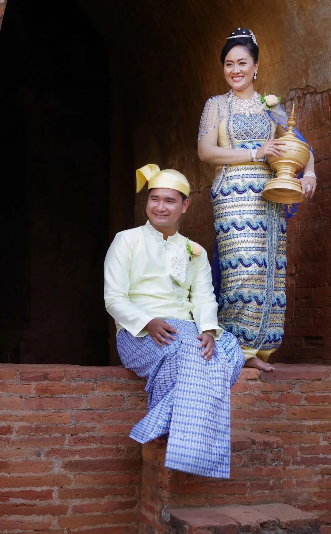 穿着隆基的过程极具艺术性。男士将布料围绕腰间,经过巧妙折叠后,在腹部前打结固定,形成了类似于长裙的形态。隆基的设计确保了行动自如,同时也突显了穿着者的体态与气质,符合缅甸男士端庄而不失随性的形象。