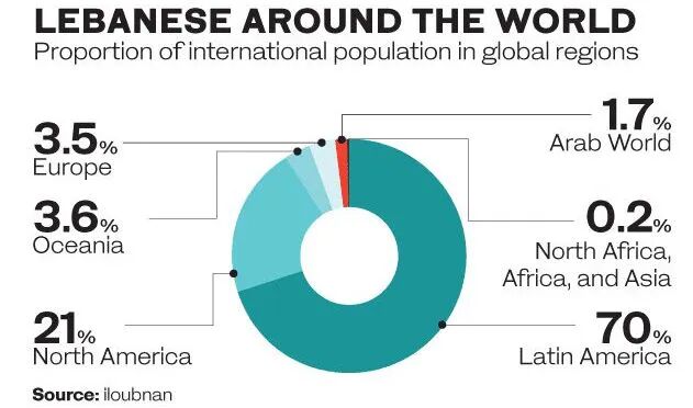 黎巴嫩是全世界少有的几个海外侨民多于本国国民的国家之一。黎巴嫩人口549万人(2022年),而海外侨民则多达400-1500万人(根据不同的统计标准)。其中,拉丁美洲的黎巴嫩裔估计有700—800万人。