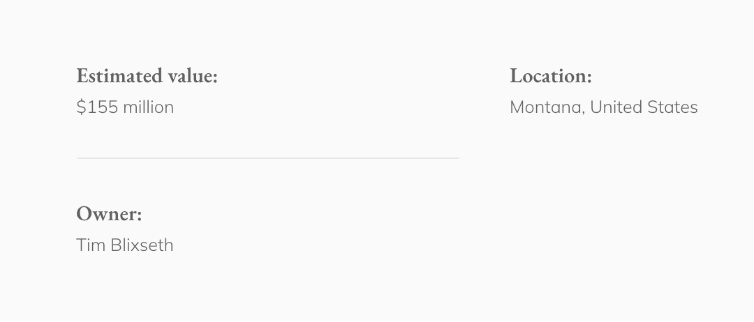 美国地产大亨蒂姆·布利克斯塞斯的美丽的物业坐落在蒙大拿州的斜坡上,总占地面积57,000平方英尺,估值1.55亿美元。拥有高尔夫球场和滑雪社区,周围环绕着高大的树木。