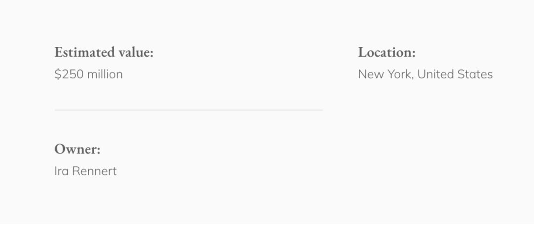 公寓有38,000平方英尺的空间,分布在五层,每层分布五间厨房。它有一个舞池,一个豪华的浴室,甚至还有几间员工卧室。该物业估值3.3亿美元,停车位估计需要33万美元。