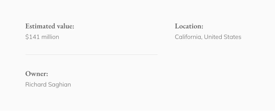 这座房子在2022年1月以2.95亿美元的价格上市——这是当时在美国最贵的房子——但最终在2022年3月以1.41亿美元的价格卖给了快速时尚公司时装新星的首席执行官理查德·萨吉安(Richard Saghian)。