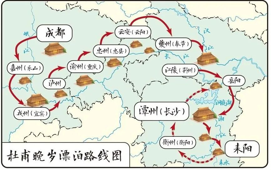 杜甫晚年处境愈发艰难,这是他50多岁后的漂泊路线 | 图源:腾讯