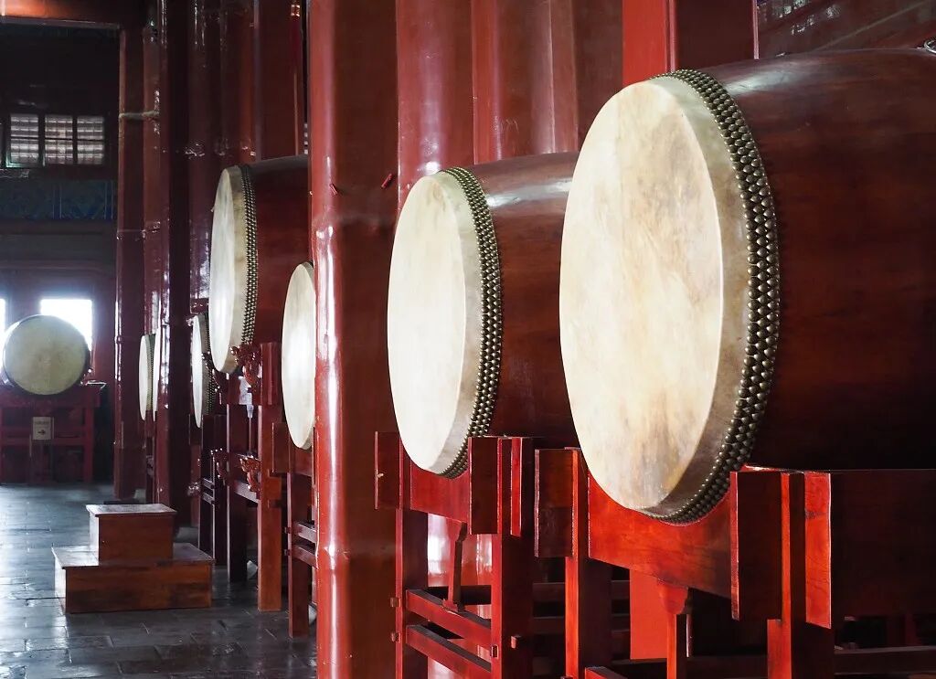 鼓楼里复原的鼓 | “北京钟鼓楼”公众号