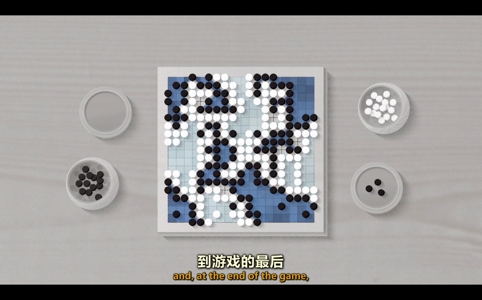 生成为图像后的围棋用“黑白”和“阴阳”来完成图像语言的叙事,这里没有象棋的等级和拟人。