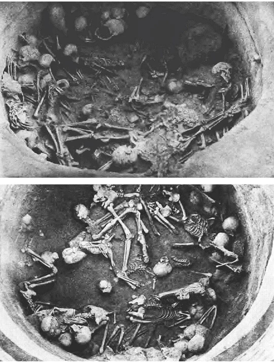 后冈H10祭祀坑第一(最上)层和第二(中)层尸骨照片|《翦商:殷周之变与华夏新生》