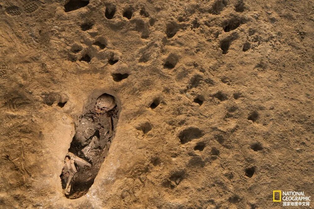 照片中展现了位于秘鲁北部万查基托-拉马斯遗址(Huanchaquito-Las Llamas)的一处被献祭的儿童的坟墓。|ROBERT CLARK