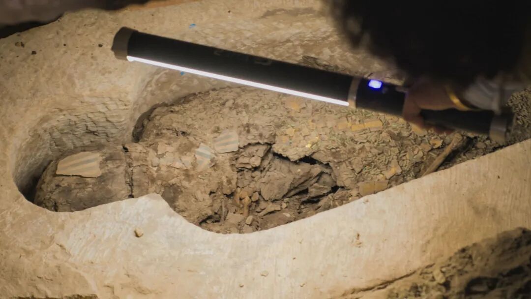 在塞加拉的木乃伊制作车间几步之外,考古学家们发现了第二个通向六座墓穴的竖井,这座墓穴里有50多具木乃伊。