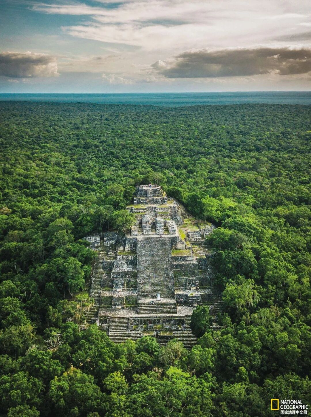 残存的遗迹:卡拉克穆尔大金字塔位于如今墨西哥的坎佩切州,从郁郁葱葱环绕其生长的植被中冒出来。在9世纪早期,卡拉克穆尔走向了衰落。目前没有发现任何迟于公元909年的碑文记录。|ALFREDO MATUS/ALAMY/ACI