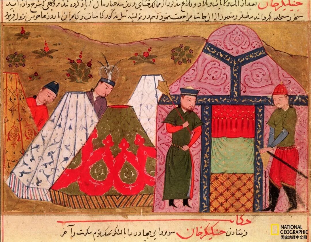 14世纪波斯艺术家根据成吉思汗正妻孛儿帖可能曾在可汗帐下监管巨大营帐的史实,绘制了这幅作品。孛儿帖不仅管理着大营,同时也是深受丈夫信赖的政治、军事参谋者。| TOM GRAVES ARCHIVE, BRIDGEMAN IMAGES