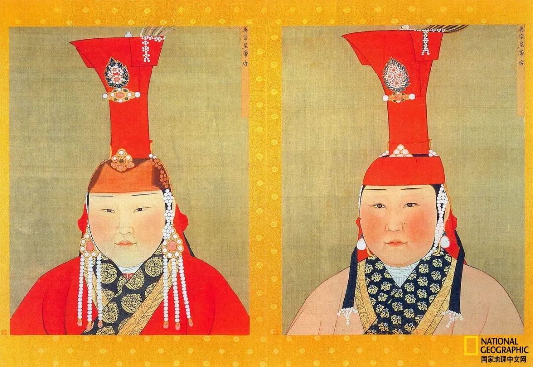 这两幅丝绸人物画像刻画了格坚汗(元英宗)的两位未留下姓名的妻子。成吉思汗与妻子孛儿帖统治时期过去200年后,格坚汗统治蒙古帝国。这些蒙古皇后留下的细节极少,但证据显示,她们的影响力皆超出内帷之外。| PICTURES FROM HISTORY, BRIDGEMAN IMAGES