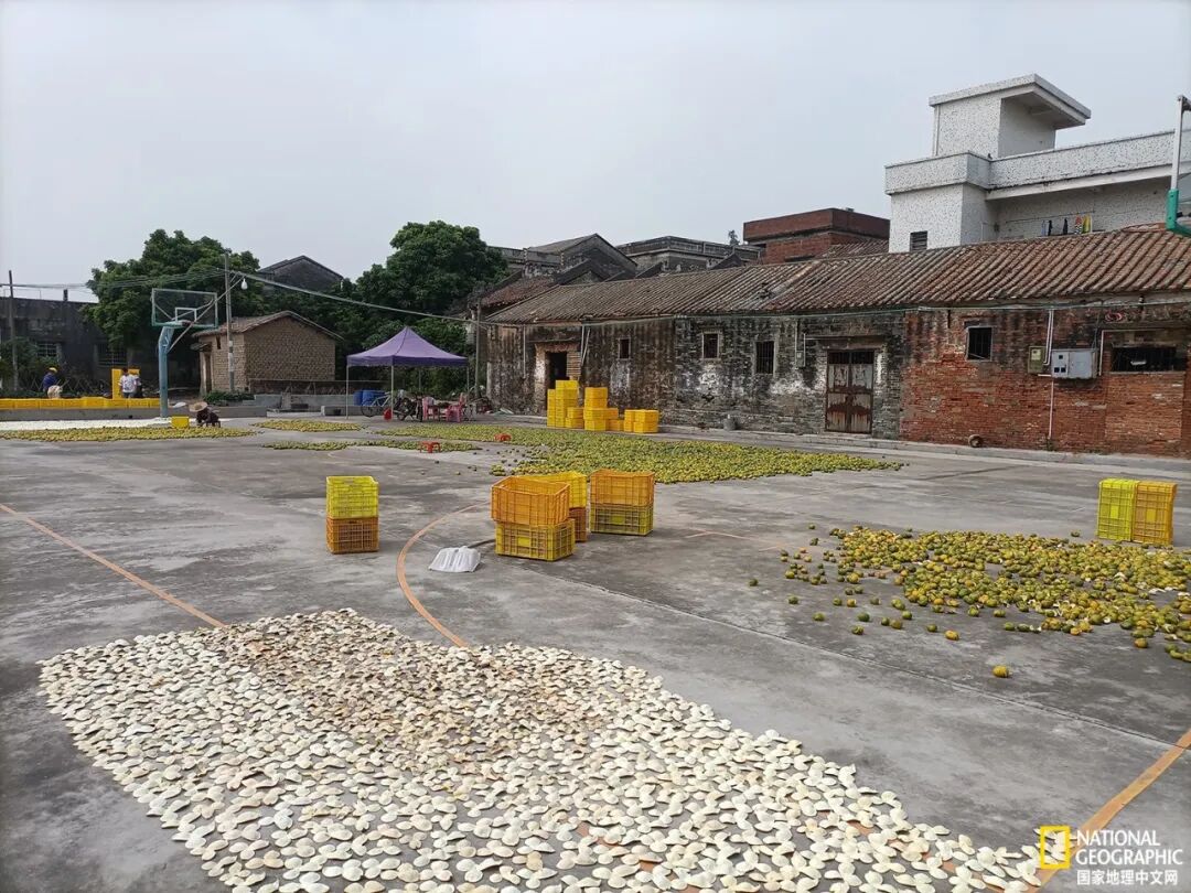如今,新会陈皮更是成行成市,远销海内外,几乎每个村子的陈皮都有销路。有趣的是,在很多村子里,可能连个人影都见不到,村前空地同样少不了柑皮。