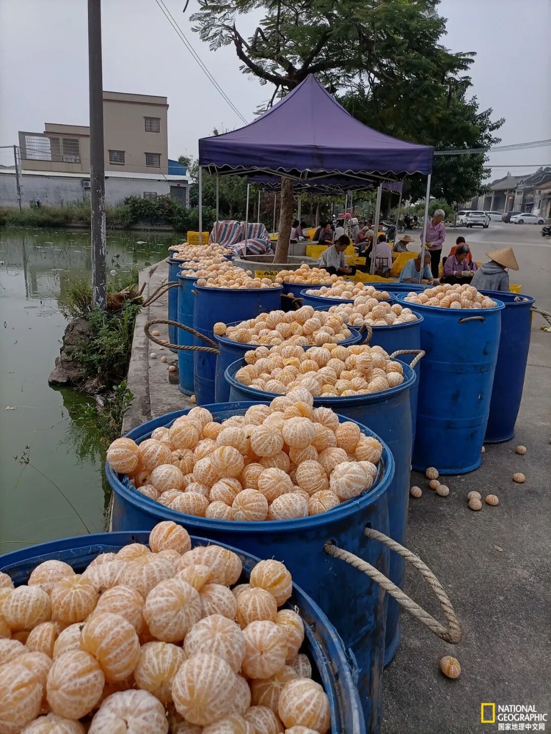 若是第一次见到剥柑皮的景象,肯定会对那一桶桶柑肉感兴趣。见我站在一旁端详,一位大妈笑呵呵说“这柑不能吃”。