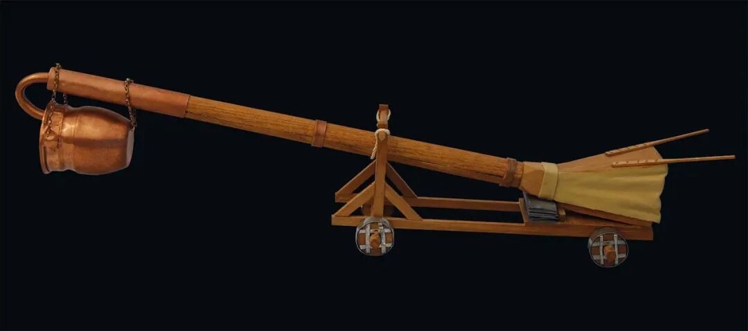 大锅里装满了燃烧的煤炭、松树树脂和硫磺。这台设备可以被推着移动到城墙下,释放大量的有毒气体。